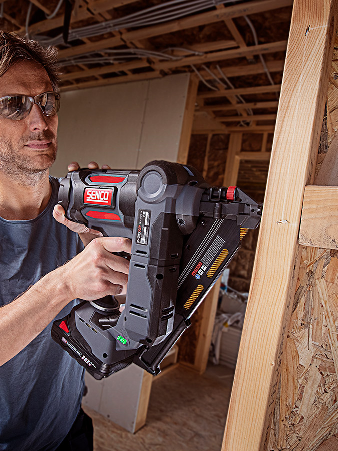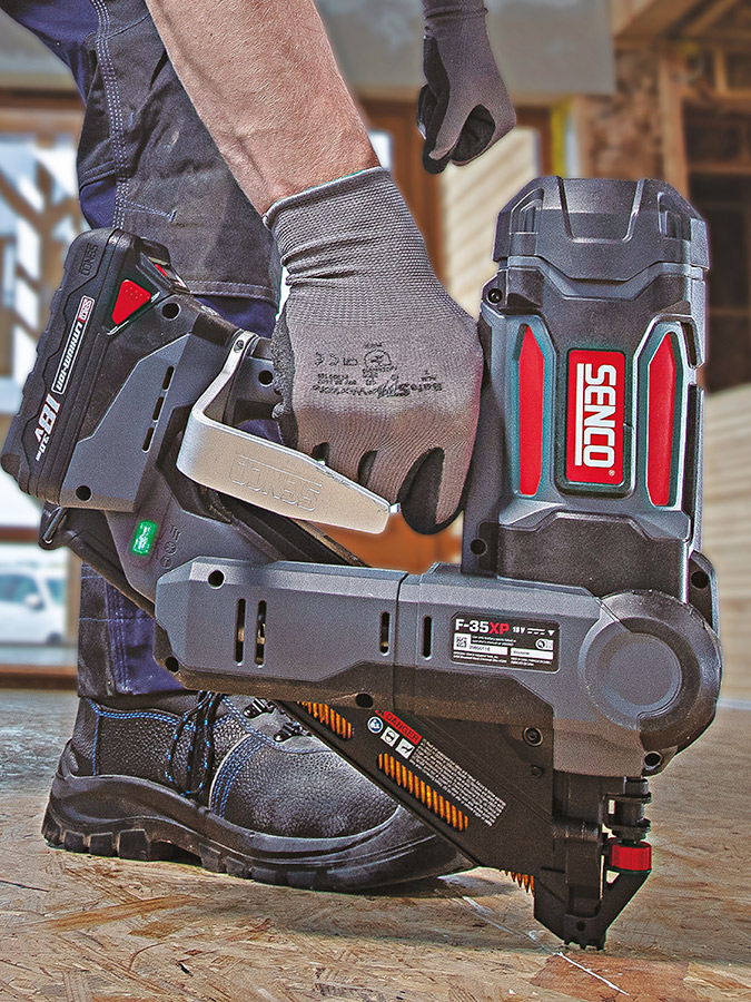 Senco F-35XP kommer med fusionsteknik som ger en verklig pneumatisk känsla, hastighet och kraft tillsammans med sladdlös bekvämlighet. F-35XP klarar av att skjuta ramspikar på 90 mm x 3,8 mm in i de allra hårdaste underlagen utan kostnaderna och krånglet hos bränsleceller.