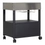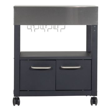 Det här sidobordet är ett perfekt komplement till Kingstone Thera gasgrillar. Modulen tillåter dig att utforma ditt eget utekök efter dina egna behov och önskemål. Här får du en rejäl arbetsyta och extra förvaring i samma snygga design. Skåpet är försett med rostfri topp och har två skåpsdörrar in till det praktiska förvaringsutrymmet. I den övre delen av förvaringsutrymmet är skåpet försett med smidiga glashållare. Skåpet är dessutom utrustat med fyra stycken praktiska rullhjul som gör det enkelt att transportera. Två av hjulen är dessutom låsbara.