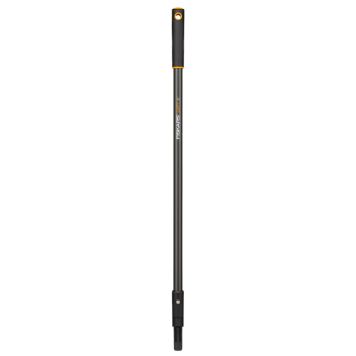 Detta trädgårdsskaft från Fiskars Quckfit är ett mellanlångt skaft i droppformat aluminium som passar samtliga redskap från serien. Handtaget har en slitstark yta och ger optimal komfort och säkerhet under arbetet. Skaftet är lackerat och består av härdat aluminium. Det handlar om ett stabilt och hållbart material, som dessutom bidrar till skaftets låga vikt. Denna modell är ett av de lättaste i serien från Fiskars skaft. Skaftet kan även användas av både vänter och högerhänta. Dessutom är trädgårdsskaftet utrustat med ett speciellt upphängningshål för enkel och praktiskt förvaring. Finns en speciell mekanism i skaftet som automatiskt låser reglaget, så att verktget kan användas direkt.