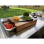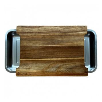 Denna rejäla skärbräda är utrustad med uppsamlingsbleck på undersidan, vilket gör den till ett oumbärligt verktyg för både grillentusiaster och professionella kockar. avsett om du skär upp grillat kött eller grönsaker, kan du enkelt skrapa ner resterna i de praktiska uppsamlingsskålarna. Skålarna kan tas bort för att underlätta förberedelser och förvara mat i kylen. Denna träskärbräda passar lika bra för privatpersoner som för restauranger och cateringföretag och är tillverkad i högkvalitativt trä som gör brädan tålig. Blecken kan diskas i diskmaskin, medan själva skärbrädan bör rengöras för hand.