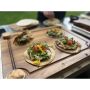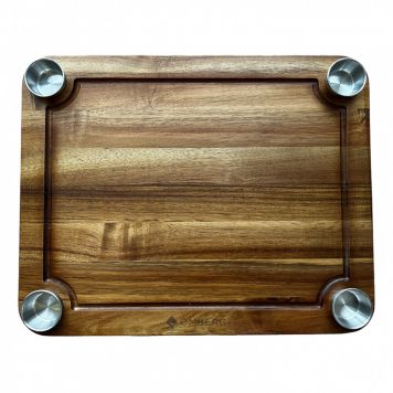Denna rejäla skärbräda är utrustad med uppsamlingsbleck på undersidan, vilket gör den till ett oumbärligt verktyg för både grillentusiaster och professionella kockar. Oavsett om du skär upp grillat kött eller grönsaker, kan du enkelt skrapa ner resterna i de praktiska uppsamlingsskålarna. Skålarna kan tas bort för att underlätta förberedelser och förvara mat i kylen. Denna träskärbräda passar lika bra för privatpersoner som för restauranger och cateringföretag och är tillverkad i högkvalitativt trä som gör brädan tålig. Blecken kan diskas i diskmaskin, medan själva skärbrädan bör rengöras för hand.