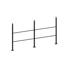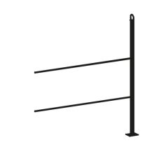 Sortimentet består av stolpar (välj mellan trä och galvaniserat/zinkgrundat, golv- och sidomontering) med förborrade hål och metallrör som enkelt kruvas ihop med varandra. Ekerö är galvaniserat, zinkgrundat och färdigmålat i svart pulverlack. Unika tillbehör som förenklar monteringen.