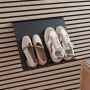 Skapa en välordnad och stilren entré eller garderob med denna praktiska skohylla, designad för montering på akustikpaneler. Hyllan mäter 46 x 26,5 cm och erbjuder plats för två par skor, vilket gör den till den perfekta lösningen för att hålla dina skor lättillgängliga och organiserade. Med sin mattsvarta finish och minimalistiska design ger skohyllan en modern känsla samtidigt som den smidigt integreras i din inredning. Den är kompatibel med både vertikala och horisontella akustikpaneler, vilket gör det möjligt att anpassa den efter din vägglayout och stil. Monteringen är enkel och snabb, tack vare de medföljande skruvarna. Denna skohylla kombinerar funktion och estetik på ett smart sätt och passar perfekt i alla moderna hem.