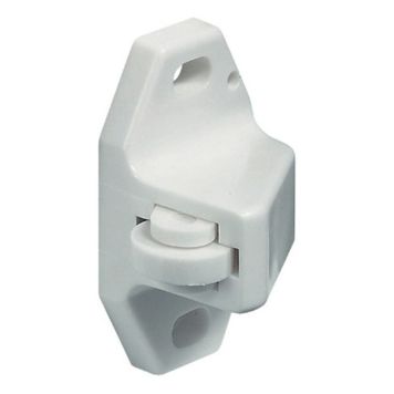 Ett litet och enkelt lås för luckor och annat som behöver kunna stängas. Rullfångaren och motparten är tillverkad i plast och skruvas fast.