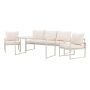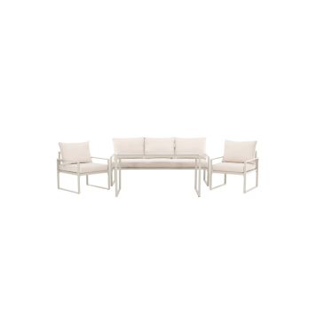 Catania är loungegruppen som ger din uteplats en sofistikerad och modern känsla. Denna stilrena grupp består av två bekväma fåtöljer, en rymlig soffa och ett elegant bord. Med en beige stålram och mjuka dynor i samma nyans, skapas en harmonisk kontrast som förhöjer utomhusmiljön. Bordet har en svart glasskiva som vilar på en stålram, vilket ger en exklusiv och hållbar yta. Catania är det perfekta valet för dig som önskar en stilren och inbjudande loungegrupp som erbjuder både komfort och ett trendigt uttryck!