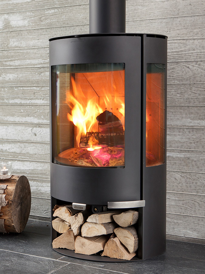 En modern braskamin är designad för att få ut mesta möjliga värme ur veden