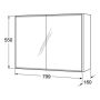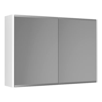 Spegelskåpet har två flyttbara hyllplan i glas. Spegelskåpet har en frostad nederkant som motverkar fingeravtryck på spegeln.