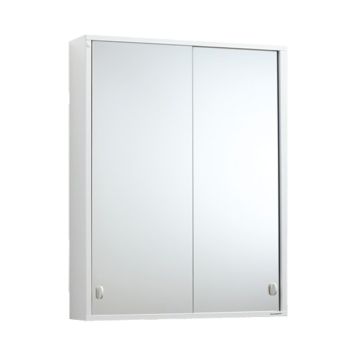 Spegelskåp I:et med skjutdörrar i spegelglas med handtag och tre flyttbara hyllor i lackad plåt. Rymligt med väl tilltagen höjd. Spegelskåpet är tillverkat av zink-järnlegerad plåt som ger utmärkt resistens mot korrosion/rost. Lackerad med pulverfärg för god reptålighet. Skåpet är tillverkat och färdigmonterat i Svedbergs fabrik i Dalstorp.