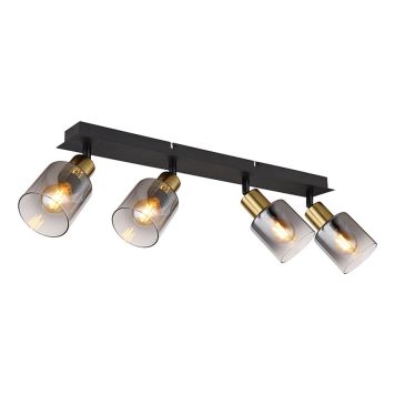 Den här spotskenan från Globo kombinerar svart- och guldlackerad metall samt rökfärgat glas för att sk...