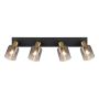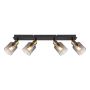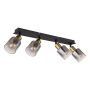 Den här spotskenan från Globo kombinerar svart- och guldlackerad metall samt rökfärgat glas för att skapa en unik design. Det rökfärgade glaset med en tydlig gradientdesign ger en touch av elegans till ditt hem. Spotskenan passar lika bra i hallen som i vardagsrummet och ger dig möjlighet att rikta belysningen efter egna behov och önskemål. Ljuskälla och lamppropp medföljer ej.