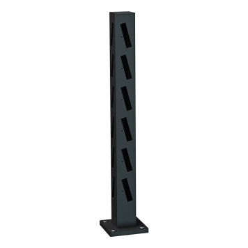 Avståndet mellan marken och den första regeln är 10 cm och avståndet mellan reglarna är 1,5 cm. Stolpen har dimensionerna 70x70 mm med hela 2 mm godstjocklek, vilket gör stolparna både stabila och gedigna. Den är tillverkad i aluminium och ger en lång livslängd tack vare det rostfria materialet. Stolpfot och stolphatt medföljer ej.