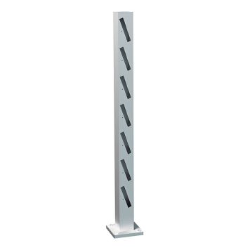 Gedigna stolpar i aluminium som passar både som altanräcke och regelrätt staket. Det är dessutom enkelt att montera, du behöver bara obehandlat virke som målas i valfri kulör med standardmåttet 21×120 mm. Monteras i 75 graders lutning för bra insynsskydd. Stolparna är tillverkade i aluminum och har en dimension om 70×70 mm. Godstjockleken är hela 2 mm, vilket gör stolparna både stabila och gedigna. Avståndet mellan marken och första regeln är 12 cm. Avståndet mellan reglarna är 2,1 cm och hålen är 23×122 mm. Stolpfot och stolphatt medföljer ej.