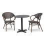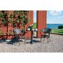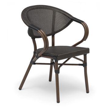 Detta är en dekorativ stapelbar fåtölj med flätad textil på sits och rygg. Med sitt underhållsfria material i aluminium kommer du få en hållbar och stilfull stol under många säsonger. Tygets material textilene ger dig en stol som är skön att sitta i även utan att använda en dyna, självklart går det bra att använda en sittdyna också. En dyna kan till exempel vara bra om du vill komma lite högre upp i stolen. Precis som textilene är caféstolens stomme i aluminium underhållsfritt, så med en stapelstol får du mer tid över till avkopplande stunder än underhåll. Kombinera gärna med matbord från Hillerstorp för en komplett och enhetlig matgrupp precis i din smak.