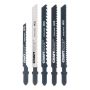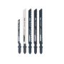 Paketet innehåller fem stycken blad. Bladet passar bra till att såga i mjukt trä, laminat, plast och andra skivmaterial.