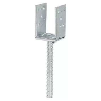 Upptäck de perfekta U-formade stolpsko för vertikal installation av trästolpar. Dessa stödsko är utrustade med korrugerade ståldubbar som enkelt kan gjutas in i marken, vilket ger en stabil och säker montering. Tack vare en lastbärande pärla med stödsko undviker du direktkontakt mellan stolpen och marken eller metallen, vilket effektivt skyddar mot trädröta. Tillverkade av robust och väderbeständigt material med varmförzinkning, är dessa stödsko idealiska för lätta till medeltunga träbyggnader!
