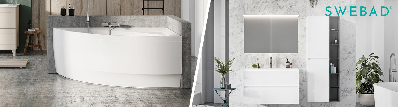 Swebads tre nyckelord för deras badrumskollektion är design, kvalitet och funktion. Swebad vill skapa badrum som håller hög kvalitet, med stor funktion och tidlös design. Hos Swebad hittar du allt från badkar till kommoder och speglar. Välkommen att upptäcka Swebads sortiment för badrum!