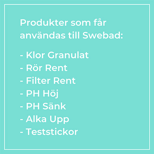 Grattis du har bestämt dig för ett Swebad! Nu är nästa steg att läsa in sig på hur du bibehåller ditt spabads hälsa. Fel kemprodukter kan istället skada ditt bad och du behöver även behandla med rätt produkter för att garantin ska gälla.