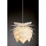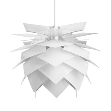 Här har vi en härlig lampa där designen är inspirerad från en ananas! Taklampan är designad av Frank Kerdil och är skapad i Danmark. Denna storlek i medium passar utmärkt ovanför matbordet. Den vita färgen gör lampan till en klassisk och elegant ljuskälla som är lika vacker med eller utan ljus. Lampan fungerar som ett konstverk i rummet och ger en unik touch till din inredning. Denna version innehåller den nya Rosetta takrosetten, vilket ger ett stilrent och modernt intryck. Ljuskälla medföljer ej