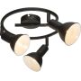En spotrondell med tre stycken lampskärmar i industriell stil, svartlackerad metall och häftig borstad färg i guld gör att denna spot står ut från mängden. Placera denna på kontoret, över köksbordet eller punktbelys konst i hemmet.