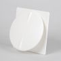 Tallriksventil tillverkad av vit plast med skruvinfästning. Har cirkulär anslutning och med fyrkantig ram. Lämplig att använda i förråd, bodar mm. Tiltbart lock för luftriktning och fixerbar skruv för injusterbart luftflöde.