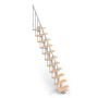 Rak trappa som är mycket enkel att montera och anpassad för utrymmen med begränsad yta. Trappan har 11 multiplexsteg i lackerad bok och ett räcke på ena sidan. Det är möjligt att ta bort ett eller flera trappsteg om så önskas och varje trappsteg har en justerbar höjd mellan 19 till 25 centimeter.
