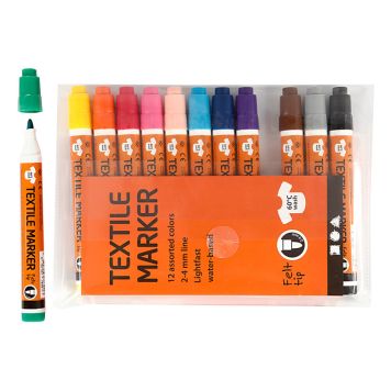 Dessa textiltuschpennor är både ljusäkta och vattenbaserade, vilket gör dem perfekta för alla dina kreativa projekt. Dessa permanenta textiltuschpennor har en filtspets som varierar mellan två och fyra millimeter, vilket ger dig flexibilitet att skapa både fina detaljer och bredare linjer. Efter strykfixering tål dessa pennor tvätt vid upp till 60 grader, vilket säkerställer att din design håller sig vackra och färgstarka även efter flera tvättar. Med ett set om 12 tuschpennor i mixade färger får du en bred palett att arbeta med, vilket gör det enkelt att skapa livfulla och unika mönster på textilier. Textiltuschpennorna är idealiska för både hobbyister och professionella konstnärer som söker pålitliga och hållbara verktyg för textilkonst. Låt kreativiteten flöda med färger som verkligen håller måttet!