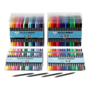 Permanenta textiltuschpennor med dubbel spets som är designade för att ge nytt liv åt både nya och gamla textilier. Dessa pennor är idealiska för att dekorera t-shirts, tote bags och andra ljusa bomullstextilier. Dessa textiltuschpennor är perfekta för alla dina kreativa projekt, oavsett om du vill skapa unika mönster på nya plagg eller ge nytt liv åt gamla favoriter. Låt din kreativitet flöda med färger som verkligen håller måttet!
