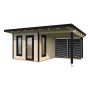 Trädgårdshuset levereras med dörr med härdat glas samt lut- och svängbara fönster. Trädgårdshus Grace passar bra som samlingspunkt i trädgården för goda måltider med familj och vänner eller som hemmakontor eller gäststuga. Golvkonstruktion med 28 mm golvbrädor är inkluderad.