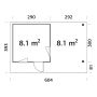 Mått inv/utv: 8,1 / 8,7+8,1 m²