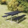 FRIGG picknickbord från HORTUS är ett set tillverkat i svartmålad furu med underhållsfri och gedigen galvaniserad stålram som ger en modern, informell och mysig look.