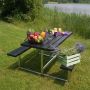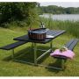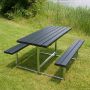 Bord/bänkset komplett med plankor och stödben i metall. Hela setet är tryckimpregnerat och grundmålat i svart färg förutom stödbenen