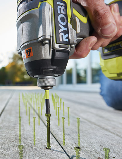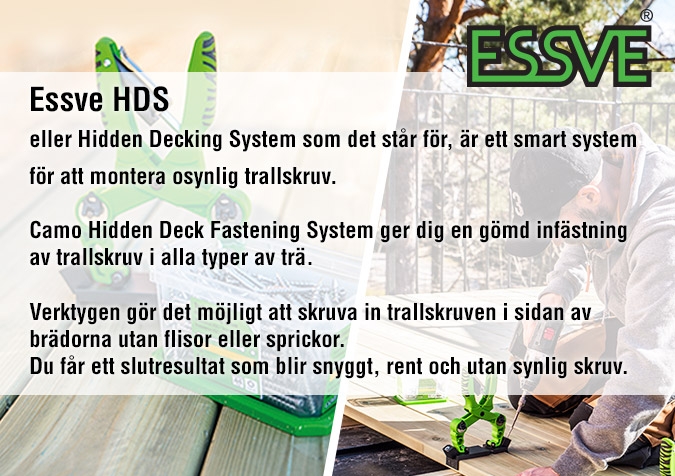 Klarar av tuffa klimat och vatten nära montering likt en altan runt en pool. Fungerar också till större trädäck samt exotiska träslag som är hårdare.