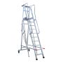 Denna mobila arbetsplattform är den perfekta lösningen för arbeten på högre höjder där säkerhet och stabilitet är avgörande. Plattformen är tillverkad av halksäker aluminium-durk och har fotlister som tydligt markerar ytterkanterna, vilket ger dig trygghet under arbetet. Med ett rejält räcke på tre sidor och en praktisk avlastningsyta framtill, blir din arbetsplats både säker och funktionell. Plattformens storlek ger gott om utrymme, och de kraftiga hjulen samt greppvänliga handtagen gör det enkelt att flytta plattformen mellan olika arbetsplatser. Trappans steg har rillor för extra halkskydd, vilket tillsammans med den starka kragningstekniken ger en stabil och hållbar konstruktion. För extra säkerhet kan du komplettera med en fällbar skyddsbur som ger fallskydd på alla fyra sidor.