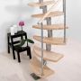 Metallen på trappan är lackerad i grått och stegen är av bokträ. Räcker har en ledstång av massiv bok och har tunna 3 mm stålvajrar mellan de stående stolparna, detta ger trappan ett transparent utseende. Detta är med andra ord en perfekt trappa där utformningen behöver anpassas och platsen är begränsad.