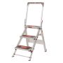 Easystep är en robust och pålitlig trappstege tillverkad i aluminium med steg i rostfritt stål. Varje steg är utrustat med halkskydd i gummi för att säkerställa din säkerhet under användning. För extra trygghet är trappan även försedd med en säkerhetsbåge som ger stöd och balans. Denna arbetstrappa är lätt att fälla ihop till ett kompakt format, vilket gör den enkel att transportera och förvara. Tack vare de monterade hjulen på bakstagen kan du smidigt förflytta Easystep efter användning, vilket gör den till ett praktiskt val för både hem och arbetsplats!