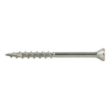Denna träskruv är tillverkad av rostfritt A2-stål, vilket gör den idealisk för användning med vanligt tryckimpregnerat trä, värmebehandlat trä, lärk och trallvirke. Skruven är vaxbehandlad för att ge ett lägre iskruvningsmoment, vilket underlättar installationen. Skruvspetsen är utrustad med ett fiberskär som minimerar risken för sprickbildning vid montering. Dessutom har skruvskallen fräsrillor för en perfekt försänkning och ett flisfritt resultat!
