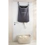 Detta är en riktigt praktisk, tvättuppsamlaren som du hänger över dörren. Den trendiga tvättpåsen i modern grå färg är gjord av högkvalitativ, slitstark bomull och ger stil till alla rum. Med sin generösa kapacitet på 65 liter erbjuder den gott om utrymme för att förvara din tvätt till nästa tvättdag. Du hakar enkelt fast påsen på en dörr som är mellan två och fyra cm tjock med två högkvalitativa krokar i rostfritt stål. Den passar perfekt för alla som föredrar en platsbesparande lösning. Den praktiska dragkedjan på uppsamlarens golv möjliggör enkel och snabb borttagning av tvätten.