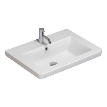 Ett stilrent tvättställ designat för att ge ditt badrum en modern och fräsch känsla. Tillverkat i högkvalitativt porslin, erbjuder det både hållbarhet och enkel rengöring. Den vita färgen bidrar till en ljus och luftig atmosfär, vilket gör det enkelt att matcha med olika inredningsstilar.