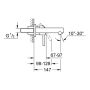 2-hålsarmatur S-Size för väggmontage utan inbyggnadsdel. Blandaren har täckbricka i metall, metallgrepp, GROHE StarLight kromyta och GROHE AquaGuide (justerbar strålsamlare) CC 110 mm, utskjutning 147 mm.