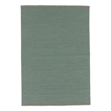 En handvävd ullmatta i en tidlös grön kulör med dekorativa kortsidor i brun naturfärg. Mattans naturliga material är både slitstarkt och smutsavvisande, vilket gör den enkel att underhålla. Placera denna eleganta matta i ditt vardagsrum eller sovrum för att skapa en varm och inbjudande atmosfär!
