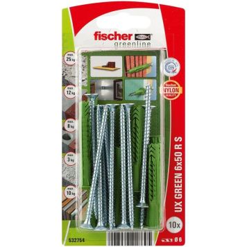 | Produktnamn | UNIVERSALPLUGG FISCHER UX GREEN MED SKRUV 6X50MM 10ST/FRP |