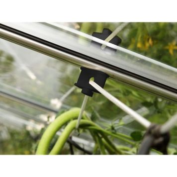 Uppbidningskrokartill att binda upp växter. Krokarna monteras i takprofilerna