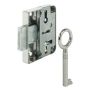 Utanpåliggande lås med en enkel regel och medföljande nyckel. Nyckelhålet ligger 30mm från kanten.