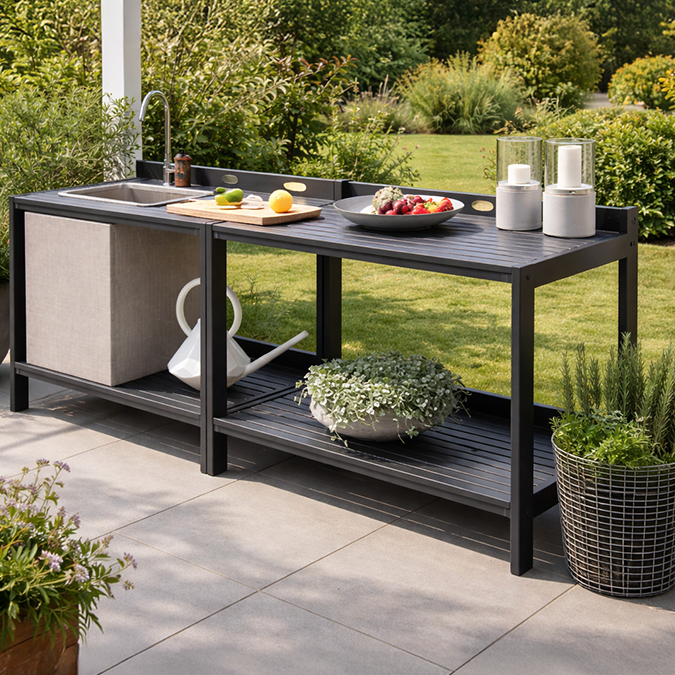 Skapa ett komplett utekök och ta matlagningen ut i trädgården. Med rätt utekök kan du enkelt laga, servera och umgås utomhus – oavsett om du vill ha en enkel grillstation eller ett fullt utrustat utomhuskök med diskho, förvaring och arbetsyta. Hos BAUHAUS hittar du utekök i flera utföranden – från färdiga paket till flexibla moduler som du kan kombinera efter dina behov. Välj mellan olika material, storlekar och funktioner och skapa en lösning som passar din uteplats, altan eller trädgård.