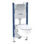 Komplett set bestående av en hängande väggmonterad wc-skål med tillhörande sits, fixtur och en matchande spolknapp. Toaletten är lättstädad vilket förbättrar hygienen i ditt badrum och är utrustad med rimfree. För enkel, dubbel eller start/stopp spolning och för golvkonstruktioner 0-20 centimeter.