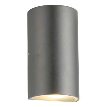 Modern och halvcylinderformad armatur med ljusutsläpp både uppåt och nedåt, vilket gör lampan utmärkt för entré då den är bländfri. Lampan har inbyggd LED och dubbla genomföringar i bakstycke för smidig vidarekoppling.
