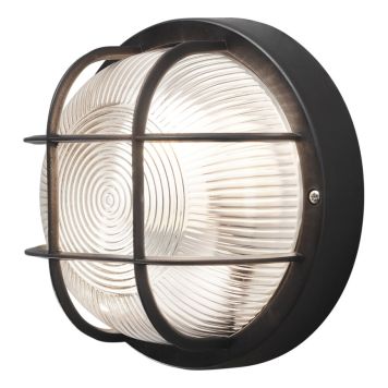 Denna vägglampa har en enkel men modern design. Passar bra på husväggen, balkongen eller vid din källardörr. Gallret över lampan gör att glaset skyddas lite extra. Denna armatur finns även i vit. Ljuskälla medföljer ej.