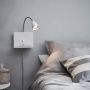 En vägglampa med ställbart lamphuvud och en praktisk hylla för förvaring av bok, glasögon eller mobiltelefon. Lampan är dessutom utrustad med ett USB-uttag för att du ska kunna ladda mobilen under natten.