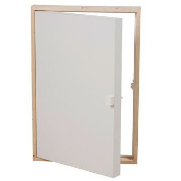 Stilren och enkel vägglucka med vitmålat luckblad med 50 mm isolering av polystyren. Den goda isoler...