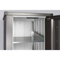 Biohorts trädgårdsförråd är ett utmärkt val för dig som söker en stabil och långsiktig förvaringslösning. Tillverkade i galvaniserat stål med skyddande ytbehandling står de emot regn, snö och UV-strålning – perfekt för våra väderförhållanden. Designen är diskret och stilren, vilket gör att förråden smälter in i både moderna och klassiska trädgårdsmiljöer. Inuti finns smarta detaljer som hyllsystem, redskapskrokar och goda möjligheter till individuell anpassning. Det gör att du får ett förråd som inte bara skyddar dina saker, utan också gör det enkelt att hålla ordning.